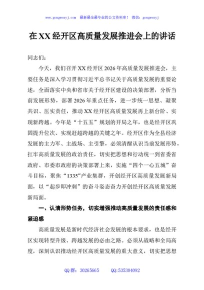 / 在XX经开区高质量发展推进会上的讲话
