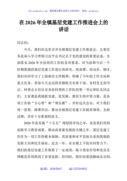 / 在2026年全镇基层党建工作推进会上的讲话