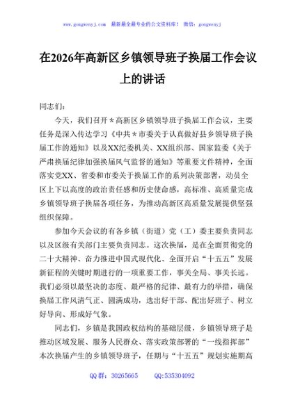 / 在2026年高新区乡镇领导班子换届工作会议上的讲话