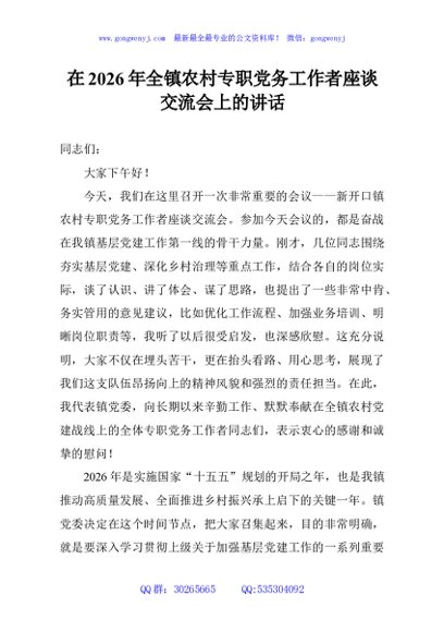 / 在2026年全镇农村专职党务工作者座谈交流会上的讲话