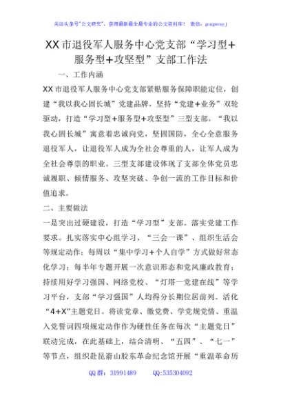 / 市退役军人服务中心党支部“学习型+服务型+攻坚型”支部工作法(党建品牌)