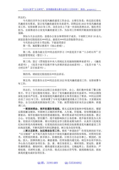 / 在县委办党风廉政建设暨警示教育会议上的主持词