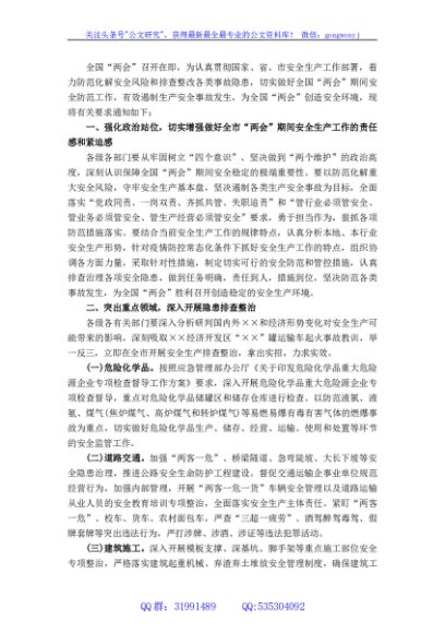 关于做好全市两会期间安全生产的通知