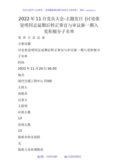 / 2022年11月党员大会-主题党日 -讨论张豈明同志延期后转正事宜与审议新一期入党积极分子名单
