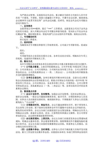 / 关于开展会风会纪专项整治活动方案