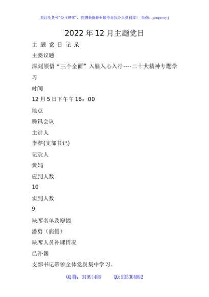 2022年12月主题党日