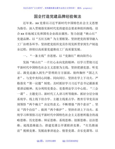 / 国企公司打造党建品牌经验做法