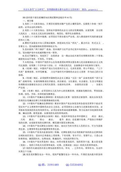 / 县科级干部任前廉政知识测试题库
