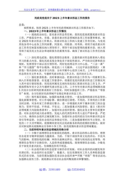 / 民政局党组关于2023上半年意识形态工作的报告
