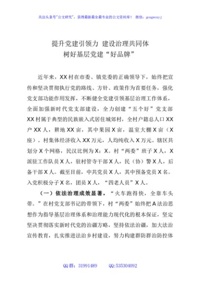 / 创建“五个好”标准化规范化党支部示范点考核评选材料(村)