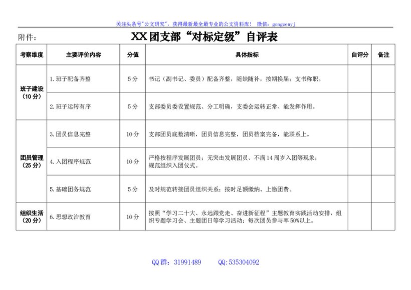 / 团支部“对标定级”自评表