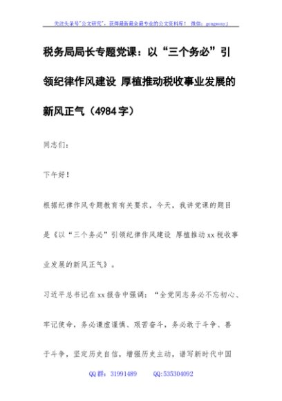 / 以“三个务必”引领纪律作风建设 厚植推动税收事业发展的新风正气