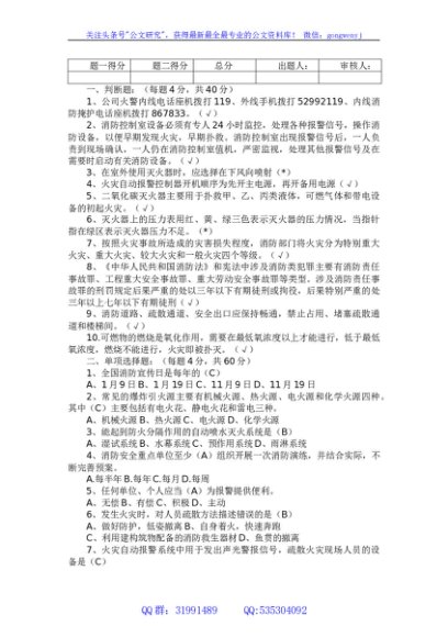 / 2023年员工(义务消防员)消防常识培训试卷(含答案)