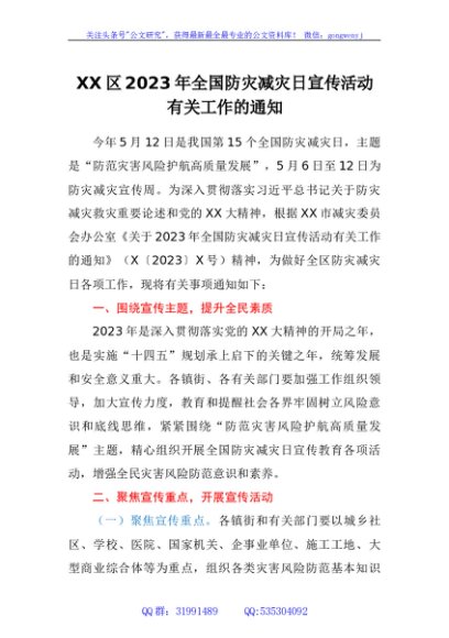 / 区2023年全国防灾减灾日宣传活动有关工作的通知