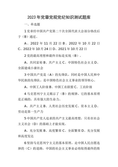 / 2023年党章党规党纪知识测试题库(6万字)