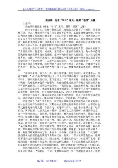/ 演讲稿:传承“学习”家风,凝聚“强国”力量