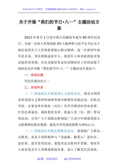 / 关于开展“我们的节日•八一”主题活动方案