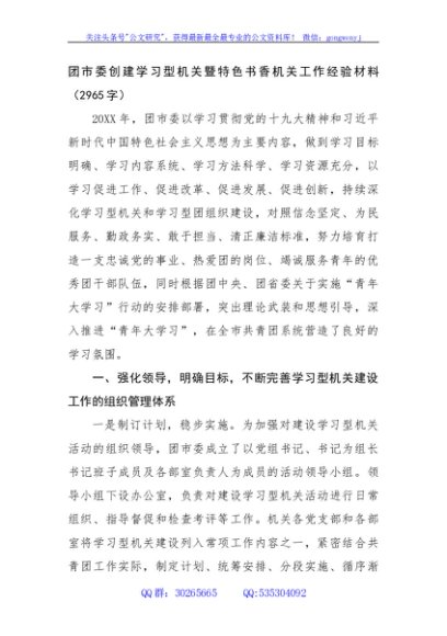 / 团市委创建学习型机关暨特色书香机关工作经验材料