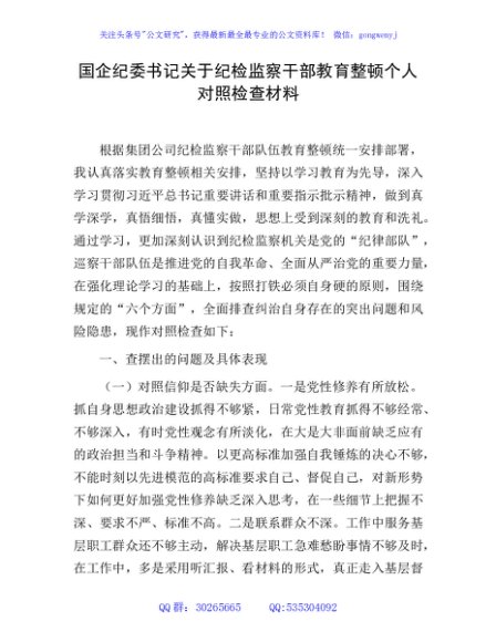 / 国企纪委书记纪检监察干部教育整顿个人检视对照检查(公司2900字)