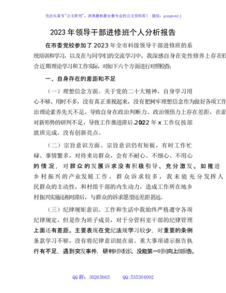/ 2023年领导干部进修班个人党性分析报告2200字
