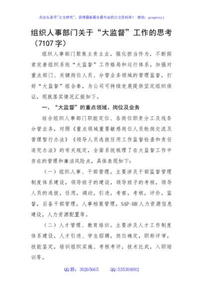 / 组织人事部门关于“大监督”工作的思考