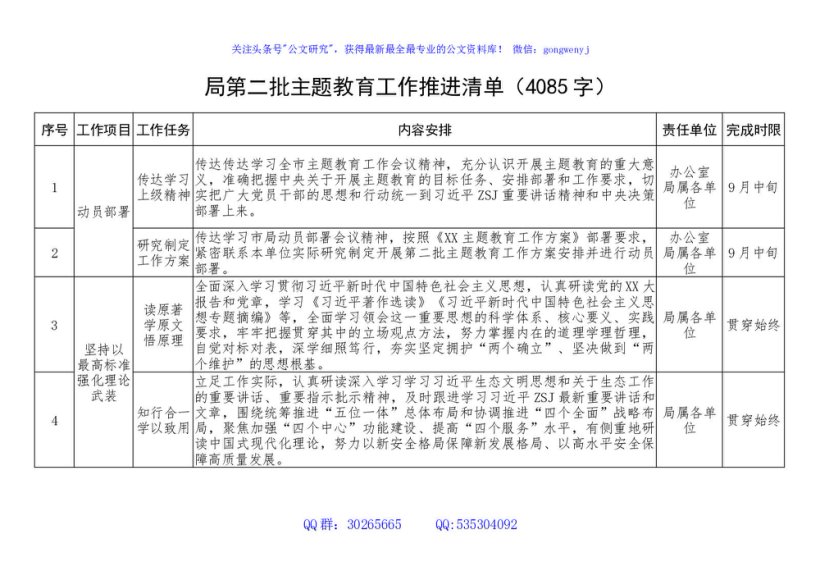/ 局第二批主题教育工作推进清单(表格)