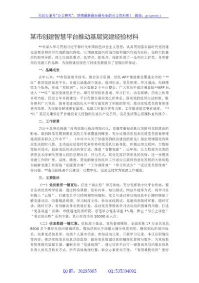 / 某市创建智慧平台推动基层党建经验材料