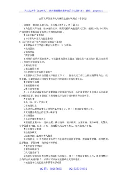 / 全面从严治党和党风廉政建设知识测试(含答案)