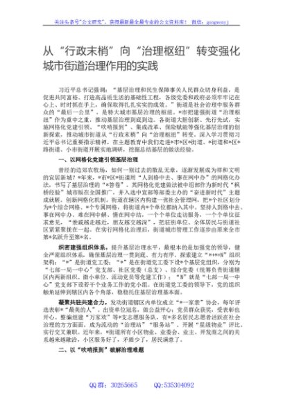 / 从“行政末梢”向“治理枢纽”转变强化城市街道治理作用的实践