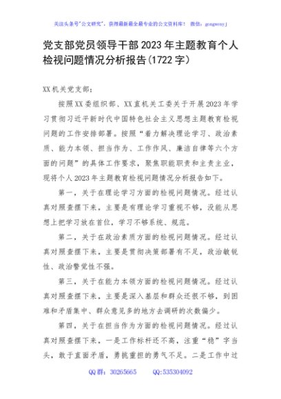 / 党支部党员领导干部2023年主题教育个人检视问题情况分析报告