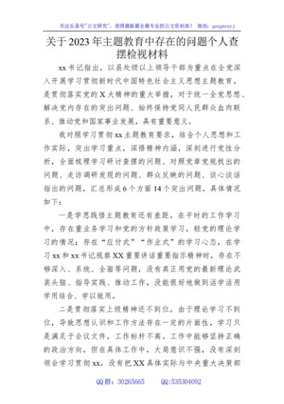 / 2023年主题教育对照检查问题清单(14个问题2000字)