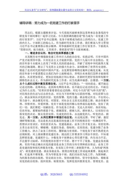 / 辅导讲稿:努力成为一名党建工作的行家里手