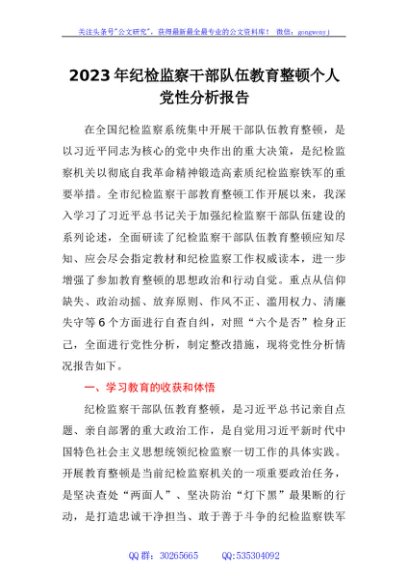 / 2023年纪检监察干部队伍教育整顿个人党性分析报告