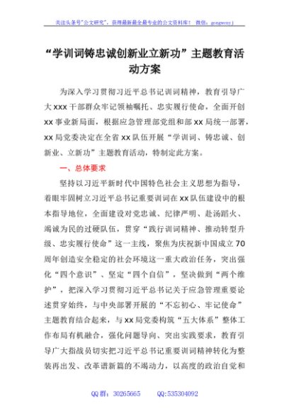 / “学训词铸忠诚创新业立新功”主题教育活动方案
