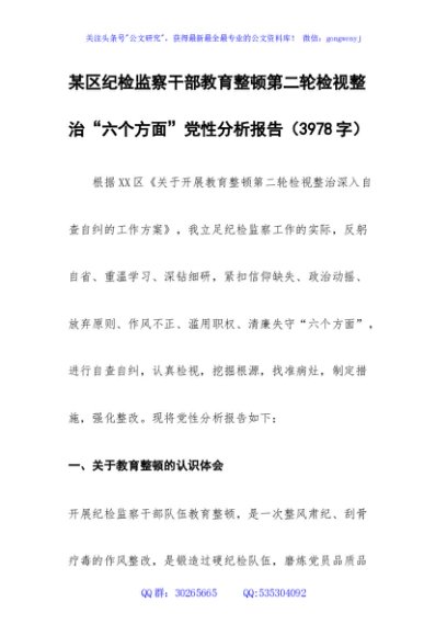/ 某区纪检监察干部教育整顿第二轮检视整治“六个方面”党性分析报告