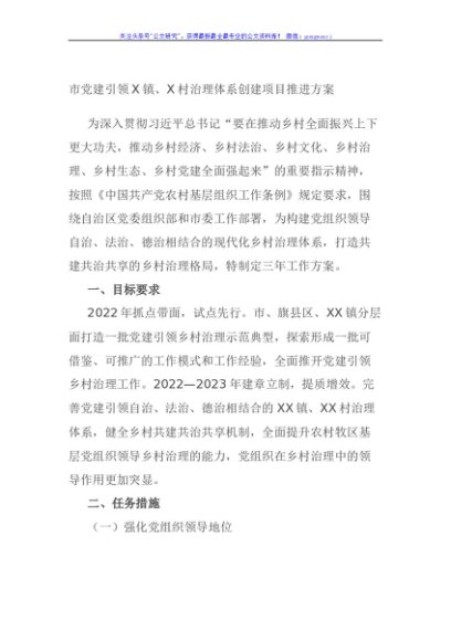 / 市党建引领X镇、X村治理体系创建项目推进方案