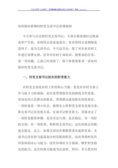 / 如何做好新期间村党支部书记讲课提纲