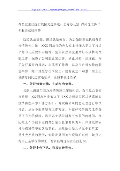 / 办公室主任抗击疫情先进事迹:坚守办公室 做好分工协作 无私奉献抗疫情