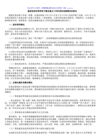 / 基层党组织领导班子整改重点工作阶段性进展情况的报告