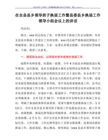 / 在全县县乡领导班子换届工作暨县委县乡换届工作领导小组会议上的