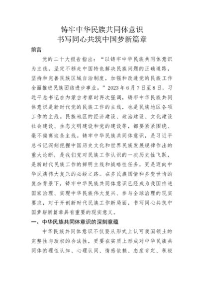 铸牢中华民族共同体意识书写同心共筑中国梦新篇章1万字