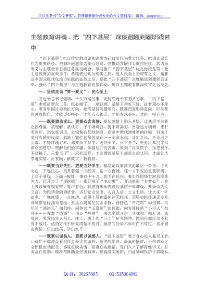 / 主题教育讲稿:把四下基层深度融通到履职践诺中