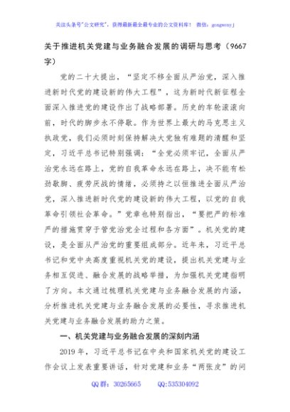 / 关于推进机关党建与业务融合发展的调研与思考