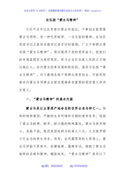 / 论弘扬“蒙古马精神”