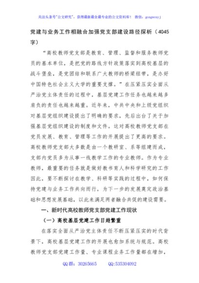 / 党建与业务工作相融合加强党支部建设路径探析