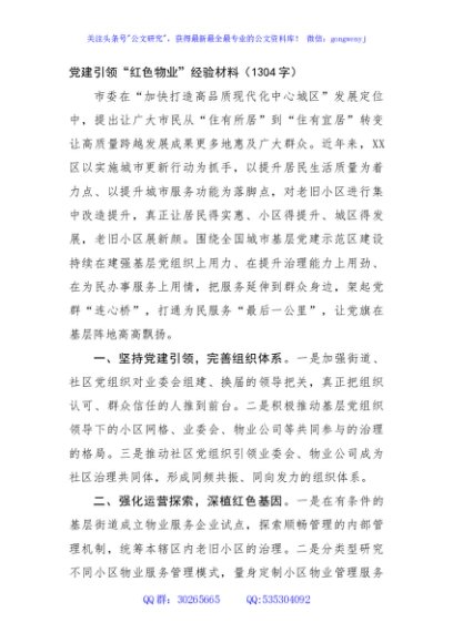 / 党建引领“红色物业”经验材料