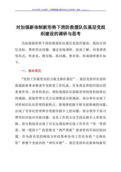 / 对加强新体制新形势下消防救援队伍基层党组织建设的调研与思考