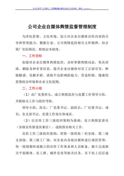 / 公司企业自媒体舆情监督管理制度