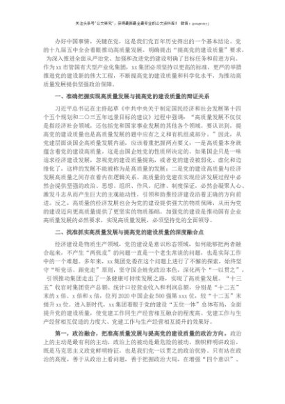 / 党委副书记、执行董事关于高质量党建引领推动集团高质量发展的思考与实践