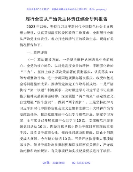 / 履行全面从严治党主体责任综合研判报告3400字